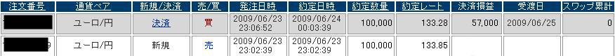 ユーロ/円 決済 2009/06/24 00:03